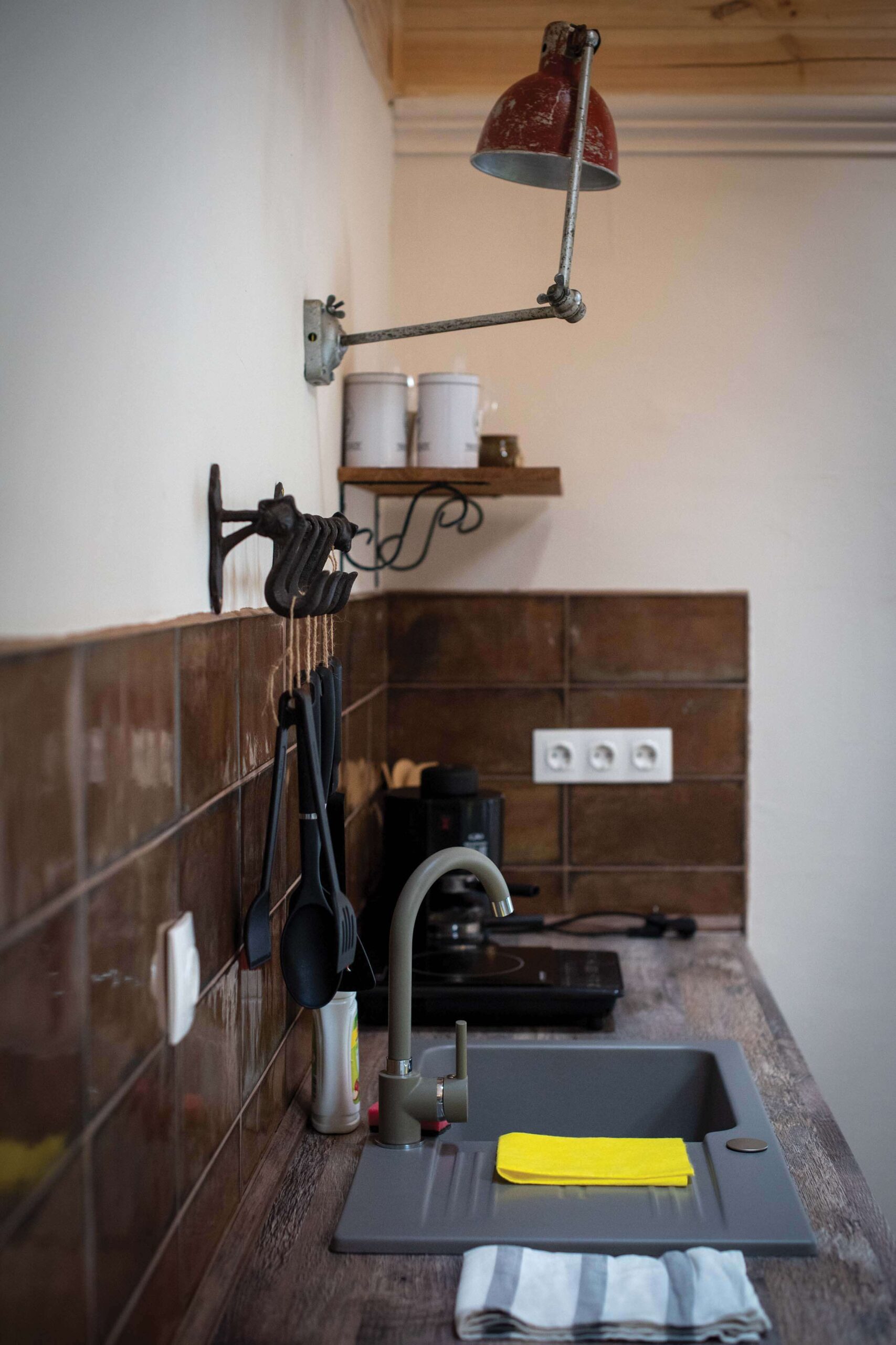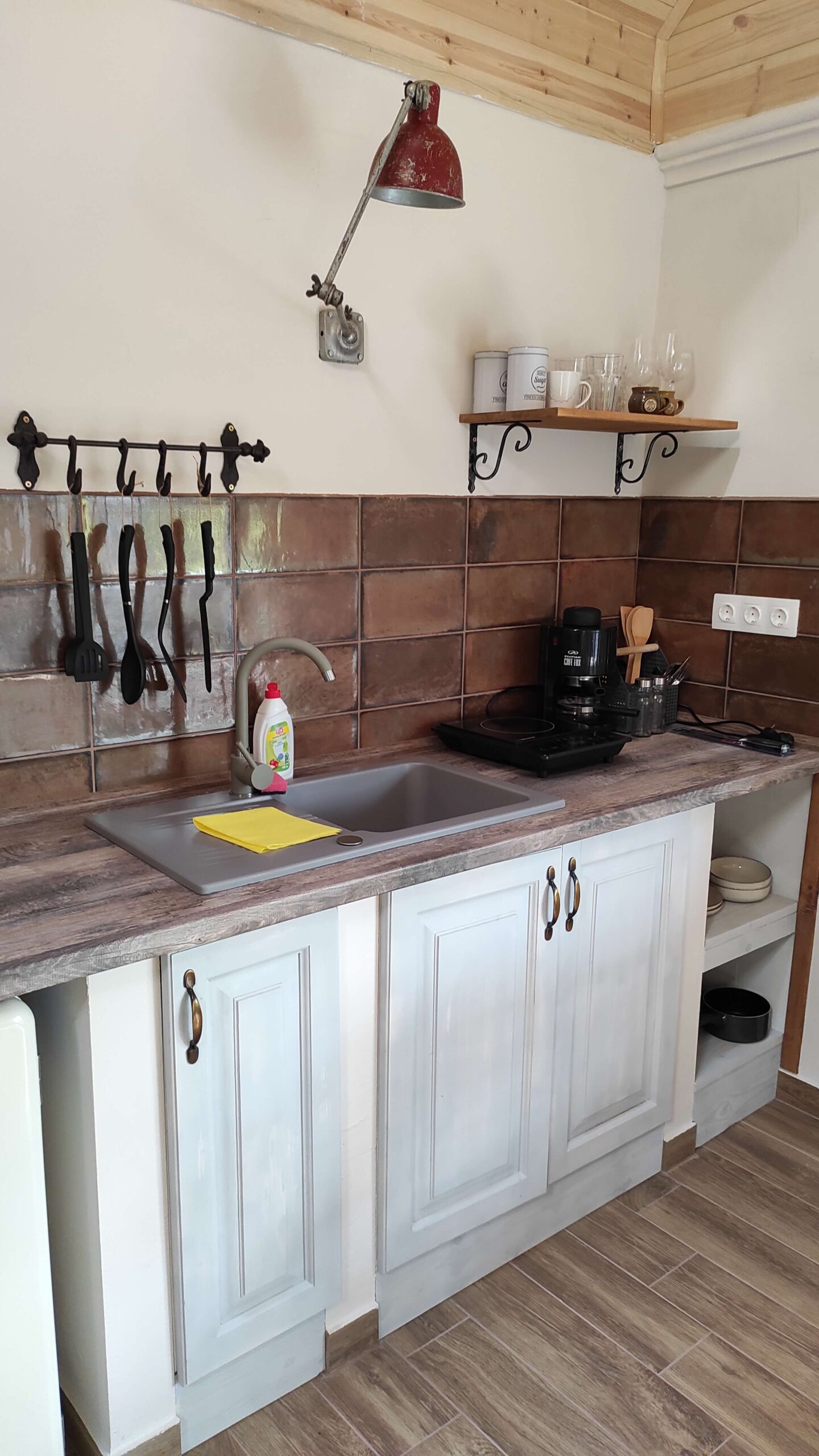 A házikó teljesen felszerelt (konyhai eszközök, mikró, kávéfőző,